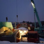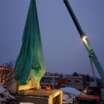Bis der Sattelschlepper entladen werden konnte, wurde das Gerüst vorzu gestellt, um keine weitere Zeit zu verlieren. Die Männer schufteten von morgens bis abends und machten auch ihre vorgeschriebenen Pausen nicht länger als nötig. Alles sollte zügig fertig werden. Wir sorgten an allen Tagen mit der entsprechenden Verpflegung von Kaffee, Kuchen und Schweizer Schokostängeli über Brötchen bis hin zu Partypizzas für gute Stimmung bei den Arbeitern.