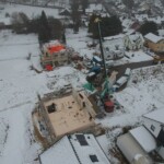 Am Abend von Tag 1 stand schon das Erdgeschoss mit entsprechender Decke. Alles mit einer Plane abgedeckt und weiter ging es an Tag 2 mit dem Obergeschoss. Dies war etwas komplexer, da es etwas verwinkelter und aus mehr Innenwänden besteht, was natürlich auch mehr Zeit beanspruchte. Ausserdem musste die Betontreppe (vom Untergeschoss ins Erdgeschoss) noch ihren Weg ins Haus finden. Tag 3 und Tag 4 wurde dann weiter am Obergeschoss gearbeitet und die Pfetten und Sparren angebracht. Einen Teil der Aufdachdämmung konnten sie auch noch anbringen. An Tag 4 verabschiedeten sich unsere Zimmermänner nach Mittag, da für abends die firmeneigene Weihnachtsfeier angesagt war. Unser Haus hüllten sie noch in eine Unterspannbahn bzw. regensicheres Unterdach sowie zusätzlich in eine rund 200 Kilo schwere riesige wasserundurchlässige PVC-Plane, um es vor Feuchtigkeit zu schützen, da der Montagetrupp seine Arbeit erst wieder am 8. Januar 2018 aufnehmen wird. Solange sind erstmal Betriebsferien…