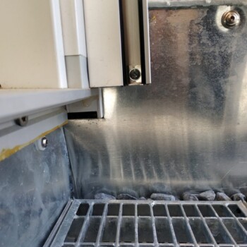 Eine Terrassentüre mit Rollladen ist ja jetzt auch nichts besonders Außergewöhnliches. Beim Diskutieren verschiedener Lösungsansätze fragten wir nochmals auch nach dem Grund für die überdurchschnittlich hohe Schwelle (Hebe-/Schiebetür im Erdgeschoss), da dies unserer Ansicht nach überhaupt der Grund für das bestehende Problem ist und weder Bekannte noch die ganzen Nachbarn, die kürzlich gebaut haben, eine derart hohe Schwelle verbaut haben. Deren Schwellen sind jeweils nur wenige Zentimeter (4-5) hoch, oder sogar nur 1-2 cm, wohingegen unsere rund 13,0 cm(!) misst – vom Bodenbelag, nicht vom Boden des mit Gitterrost vertieften Ablaufs.