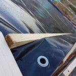 Vom Nachbarhaus aus gut zu sehen hatte sich leider zudem auch die zusätzliche Plane auf dem Hauptdach gelöst, was bei diesen Windgeschwindigkeiten wahrlich kein Wunder war. Also Vater mit meinem Mann rauf aufs Gerüst und mit mehreren Latten die Plane wieder, und diesmal gescheit, an der Dachkonstruktion befestigt.